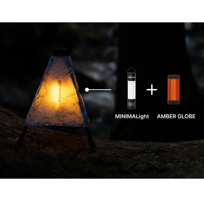 5050WORKSHOPのTHE ANDON × TRIPOD HANGER(ザ アンドン×トライポッドハンガー)は、MINIMALightなどの小型LEDランタンを吊るし、専用カバーを取り付けることで行燈のような優しい灯りを演出してくれます。