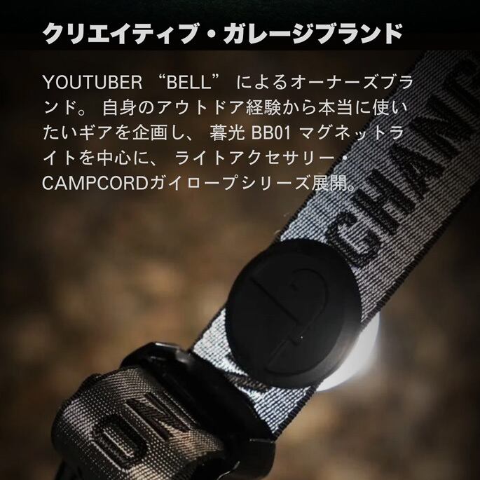 台湾発のガレージアウトドアブランドです。ランタンまわりのアクセサリーや焚き火時間を彩る小物、そしてタープ設営に欠かせないガイロープまで。