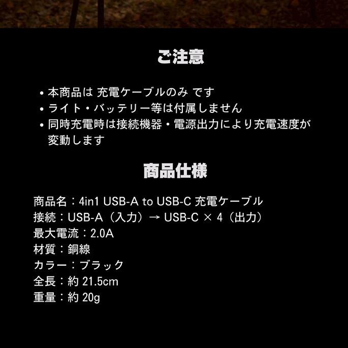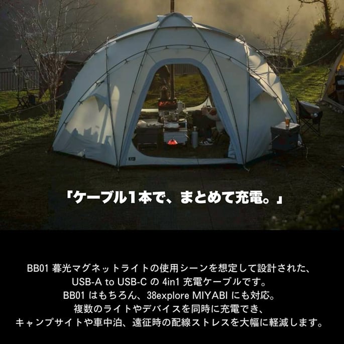 [?] Bell's Camping 4in1 USB-A to USB-C 充電ケーブル キャンプ テント タープ アウトドア