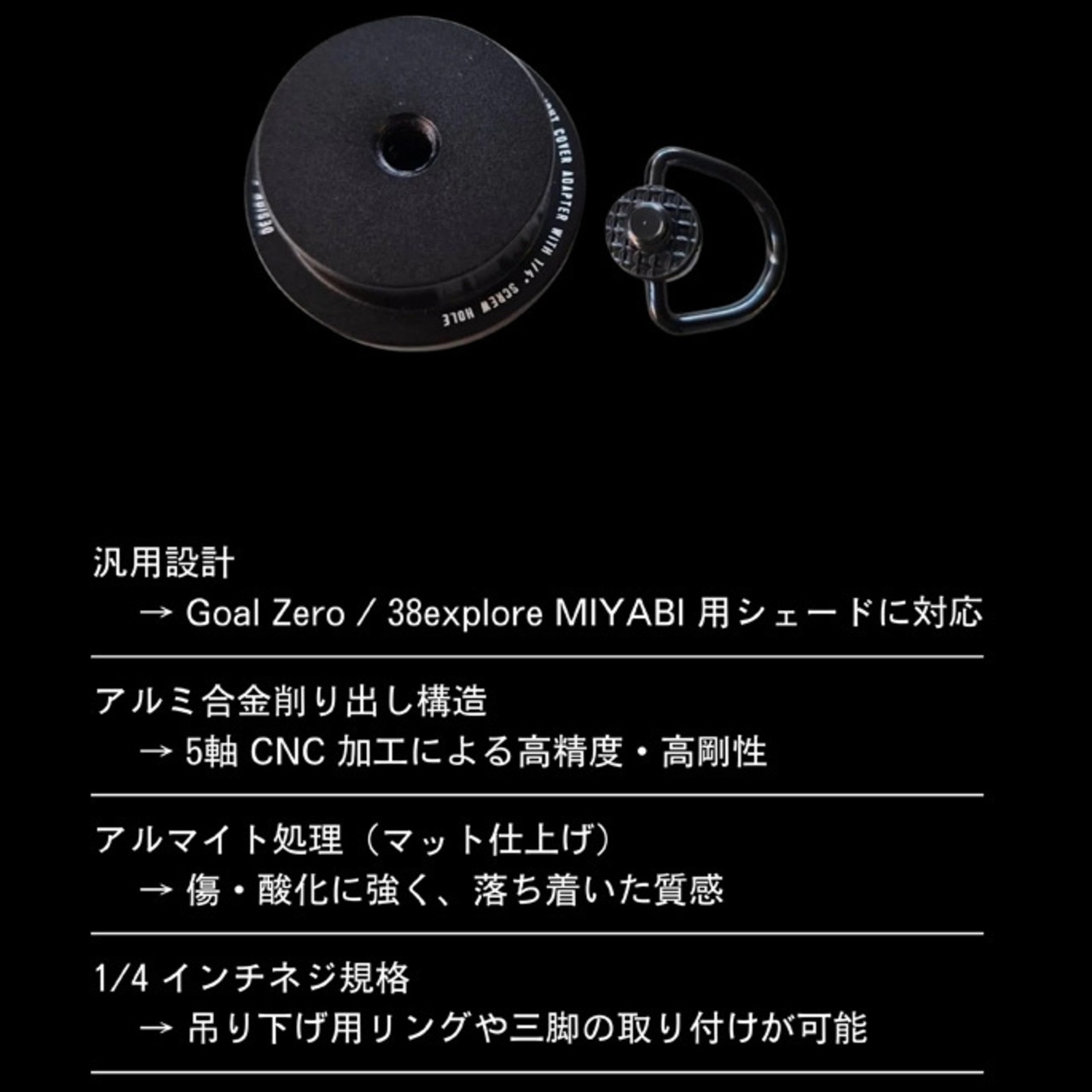 Goalzeroや38explore MIYABI用シェードと組み合わせて使用できる汎用シェードアダプターです。