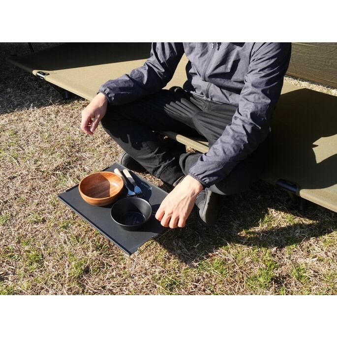 VENTLAX独自の静音設計で寝返り時のギシギシ音を極限まで抑えたキャンピングコットです。A7075アルミポールを採用し、表面にはブラスト加工を施してマットな質感に仕上がっています。